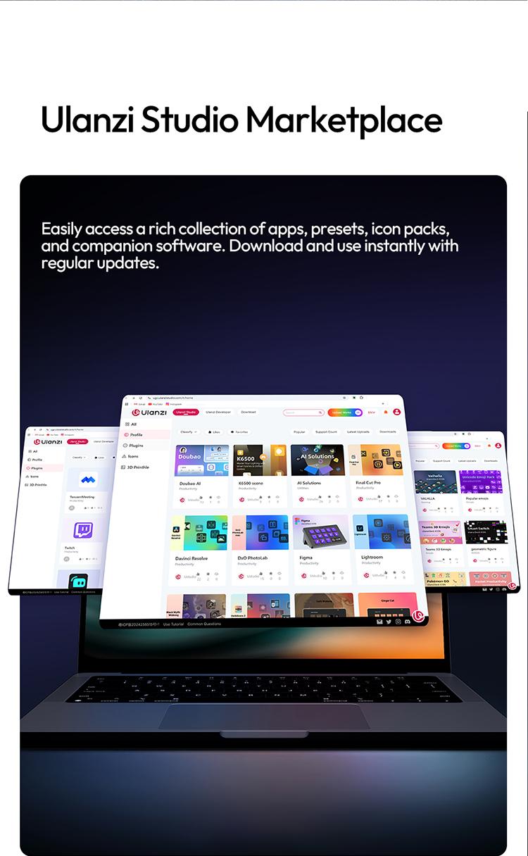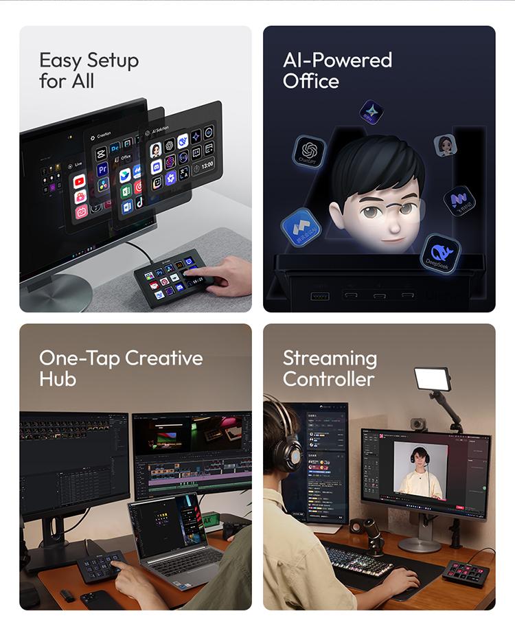 The Ulanzi D200H Deck Dock is an AI-powered office streaming controller. It's designed for computer fill light in intelligent live broadcast rooms. This innovative device enhances your streaming experience by automating control over fill lights. Ideal for professionals looking to streamline their live broadcasts.